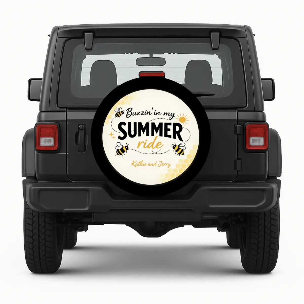 Note: The side of the tire cover is not printable and features a clean, uniform black color.